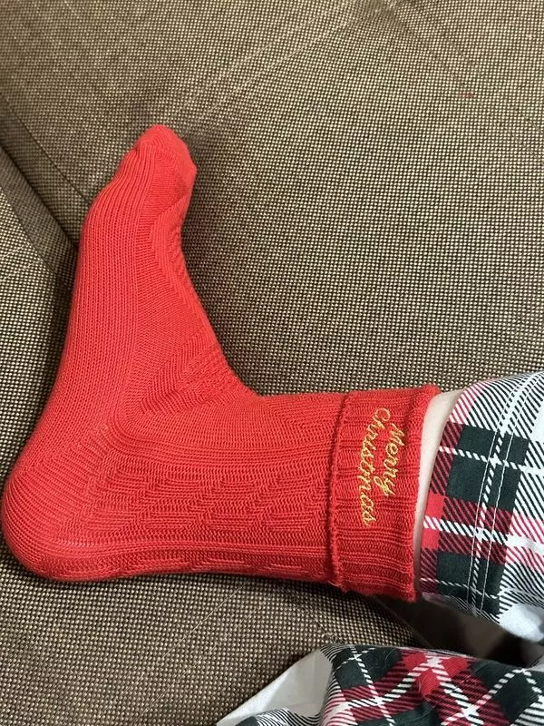 These socks stand out because they blend cute Christmas style with everyday comfort. The detailed cartoon embroidery and “Merry Christmas” lettering give them a unique, festive personality without feeling over-the-top. Made from soft cotton with flexible spandex, they stretch gently around your feet, offering a snug but breathable fit that feels great all day long.